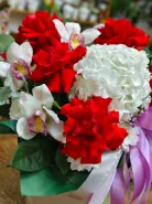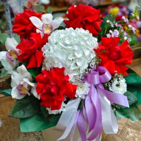 Своеобразная цветочная композиция может стать как просто презентом, так и потрясающим свежим украшением любого торжественного интерьера.